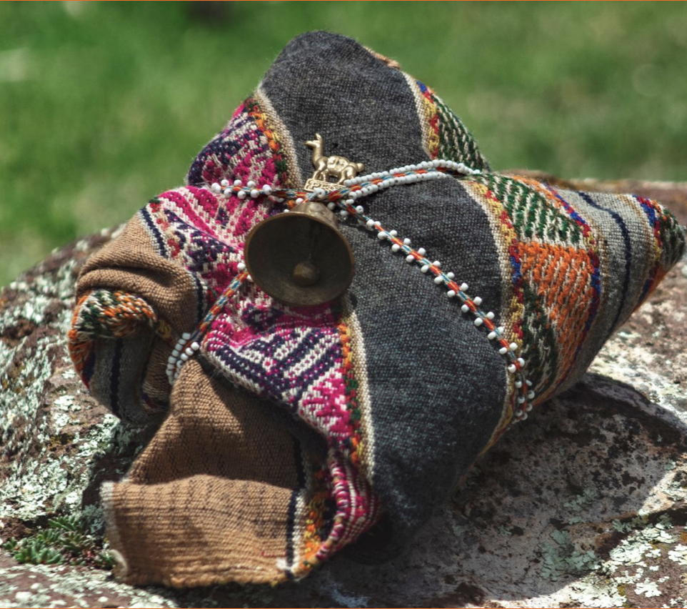 Mesa Cloth, bells, and ties: can be shipped for an additional cost of $200 USD. Package includes hand woven masculine + feminine cloth from Q’eros nation; two bells, and a sun tie.